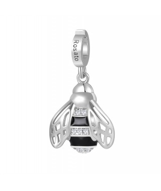 Charm in argento 925, zirconi e smalto nero a forma di ape.