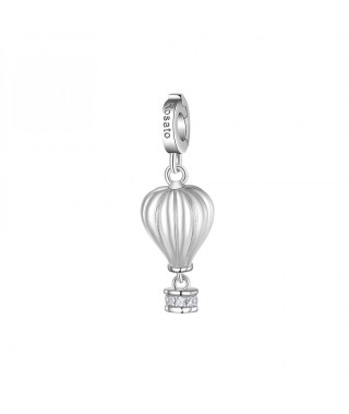 Charm in argento 925, zirconi e smalto bianco a forma di mongolfiera.