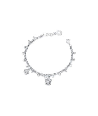 Bracciale a doppia catena in argento 925 con angelo e fiore pendenti in argento e zirconi.