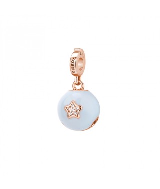 Charm in argento 925 placcato oro rosa, smalto azzurro e zirconi.