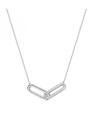 Collana girocollo in argento 925 e zirconi bianchi con due ovali intrecciati.