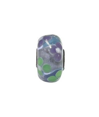 Trollbeads - Beads Unico Viola con fiori viola e verdi
