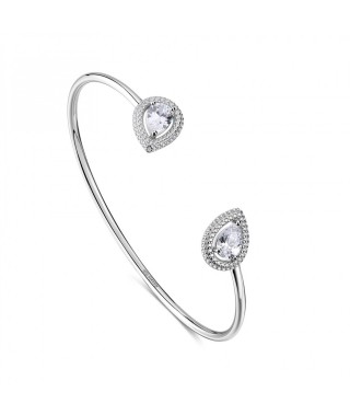 Bracciale rigido aperto in argento 925 con zirconi a goccia.