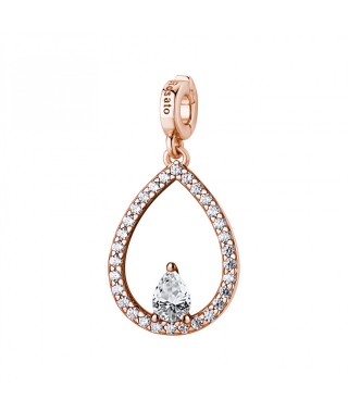 Charm in argento 925 placcato oro rosa e zirconi bianchi a forma di goccia.