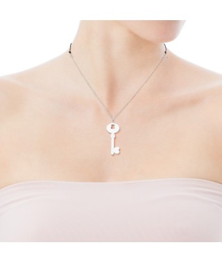 È possibile sganciare la chiave dalla collana grazie ad un moschettone presenta alla giuntura tra la collana di argento e quella di tessuto.
