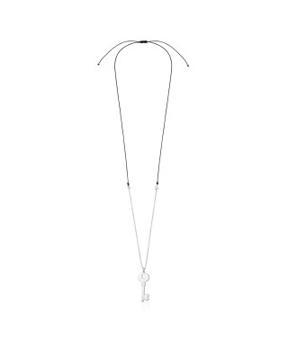 Collana in tessuto e argento 925 con pendente a forma di chiave.