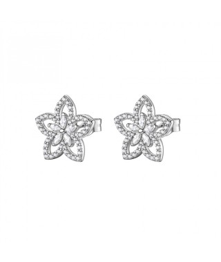 Orecchini a lobo in argento 925 e zirconi bianchi a forma di fiore.