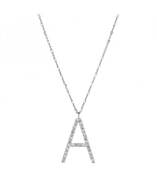 Collana in argento 925 con lettera A in argento e zirconi bianchi.