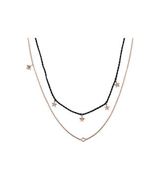 Collana doppia in argento 925 rosé e cordino di seta.
