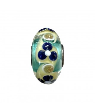 Trollbeads - Beads Unico Verde acqua con fiori blu