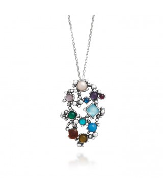 Collana in argento 925 con agata, ametista, onice, perla naturale, calcedonio, madreperle in varie colorazioni doppiate con cristallo e siamiti.