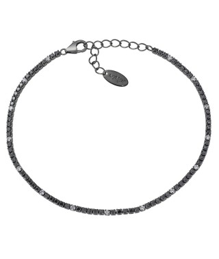 Bracciale tennis in argento 925 brunito con zirconi neri e bianchi.