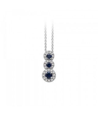 Collana in oro bianco 18kt con pendente con diamanti ct. 0,15 V SG e zaffiri ct. 0,33.