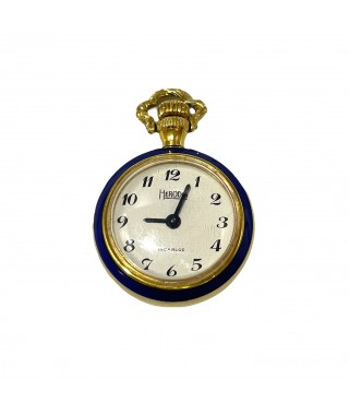 Spilla/orologio in oro giallo 18kt funzionante con movimento svizzero meccanico a carica manuale.