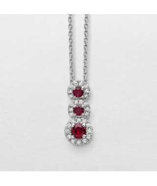 Collana in oro bianco 18kt con pendente in diamanti autentici a taglio brillante ct.0,15 G VS e rubini ct.0,30.