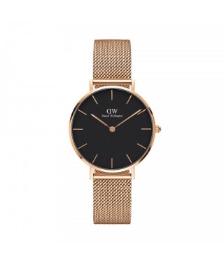 Cassa e cinturino in acciaio rosato, quadrante di colore nero, movimento al quarzo con vetro zaffiro.