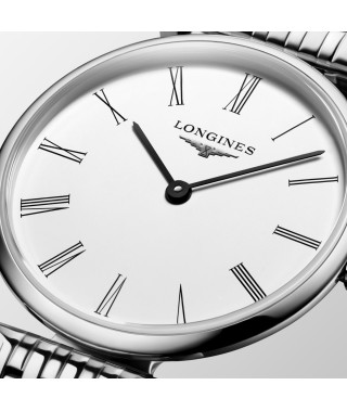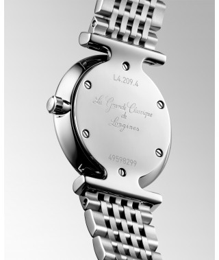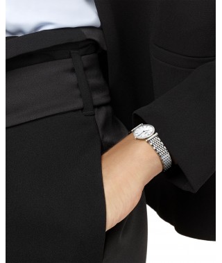 Orologio con cassa e cinturino in acciaio, quadrante bianco.