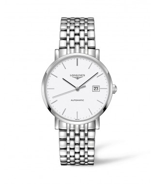 Orologio con cassa e cinturino in acciaio con quadrante bianco..