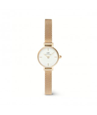 Cassa e cinturino maglia milano in acciaio inossidabile con PVD placcato in oro, quadrante bianco, movimento al quarzo.