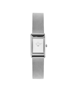 Cassa e cinturino mesh in acciaio inossidabile, quadrante bianco, movimento al quarzo.