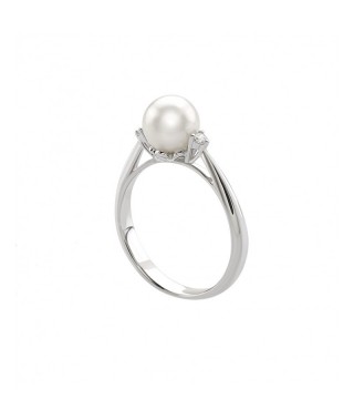 Anello in oro bianco 18kt con perla e diamanti autentici taglio brillante ct.0,08 G VS.